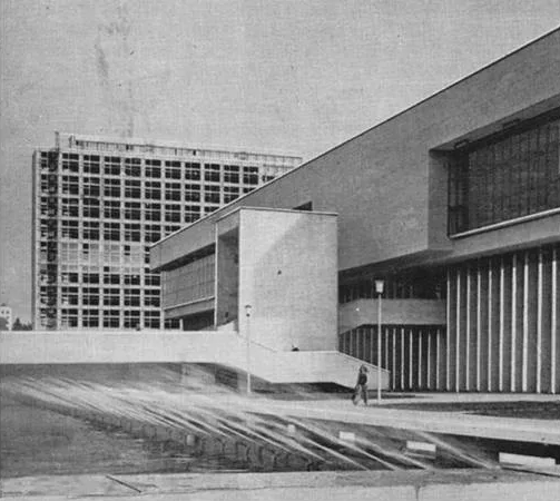 Его зависший над неглубоким прудом строгий параллелепипед изящных пропорций – один из ключевых, и, пожалуй, наиболее узнаваемых фасадов советского модернизма,